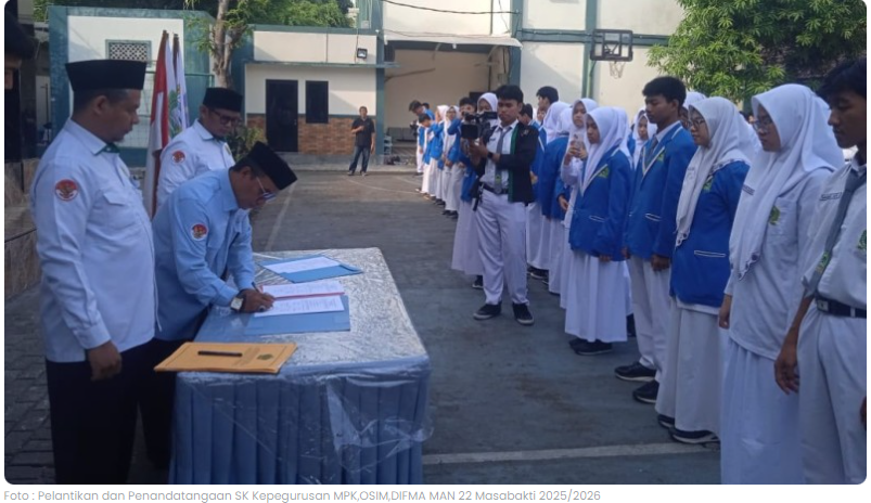 Dengan semangat kebersamaan yang diibaratkan seperti koloni semut, pelantikan MPK, OSIM, dan DIFMA Asrama MAN 22 Jakarta tahun 2025/2026 menjadi momentum penting untuk menumbuhkan rasa tanggung jawab, kekompakan, dan kepemimpinan yang kuat di kalangan siswa madrasah. (Humas MAN 22 Jakarta)